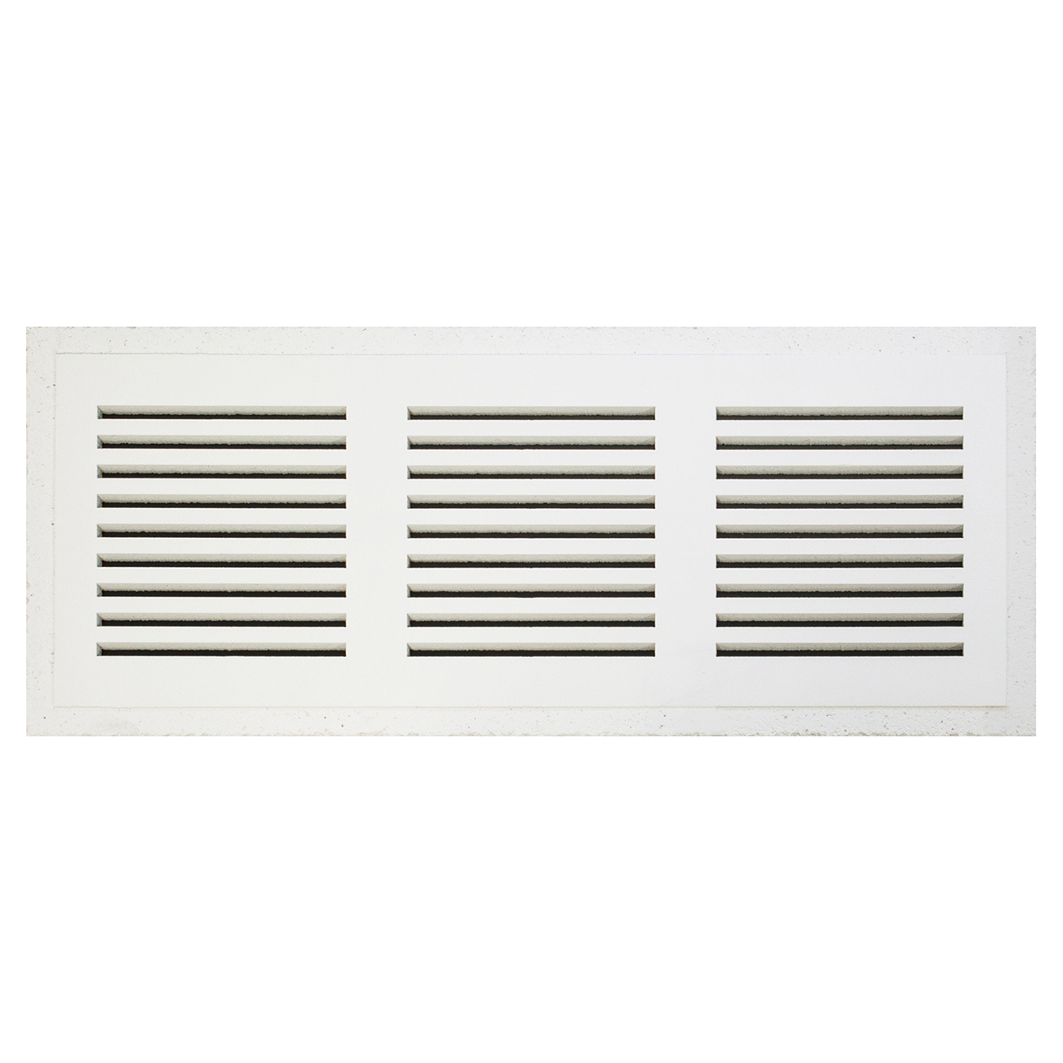 This Cold Air Return cover is a permanent fixture that was designed to replace the standard duct size opening of 24″ x 6″ or 24″ x 8″. It muds right into your wall, and finishes at 24″x 10″ with a slotted area of 20.5″ x 6″.